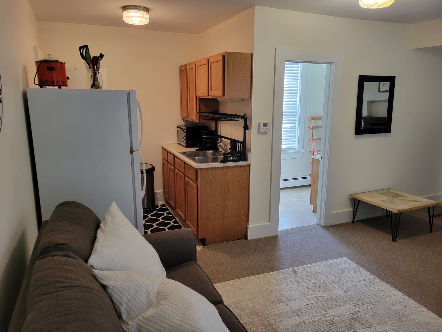 This updated studio apartment is located on the first floor of our Pleasant St. property near downtown West Lebanon. The apartment is furnished and located in a quiet location close to public transit and several restaurants!