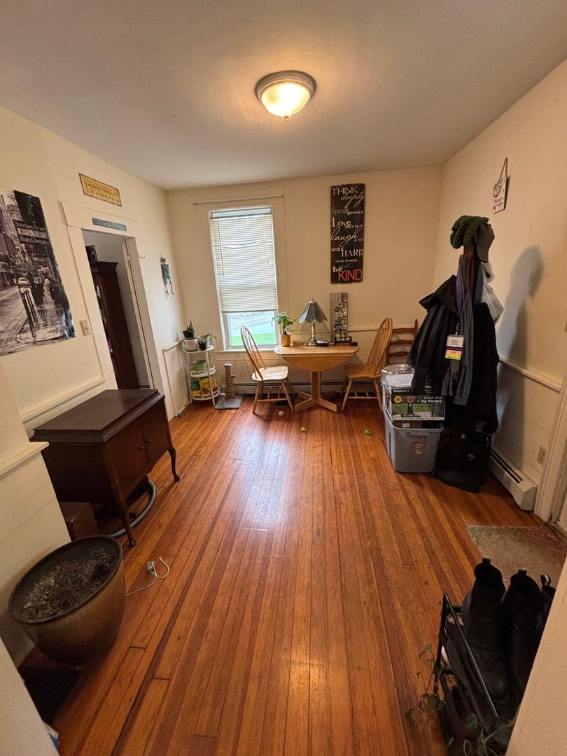 This large 1-bedroom apartment is located in a quiet area minutes from downtown Hanover and Dartmouth College. It features hardwood floors, off-street parking, and a private storage area on site.